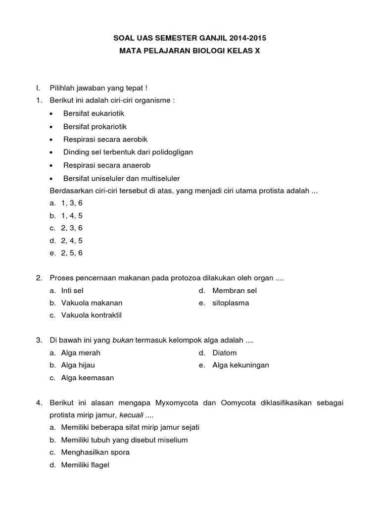 Play this game to review biology. Contoh soal biologi untuk uas/ukk berisikan 55 butir soal (40 pg + 15 essay). Berikut di bawah ini soal biologi dengan jawabannya. Pada kesempatan kali ini akan kami bagikan kumpulan soal uas ulangan akhir semester 1 ganjil kelas 10 x sma . Soal ukk / uas smp dan sma contoh kunci biologi uas x.